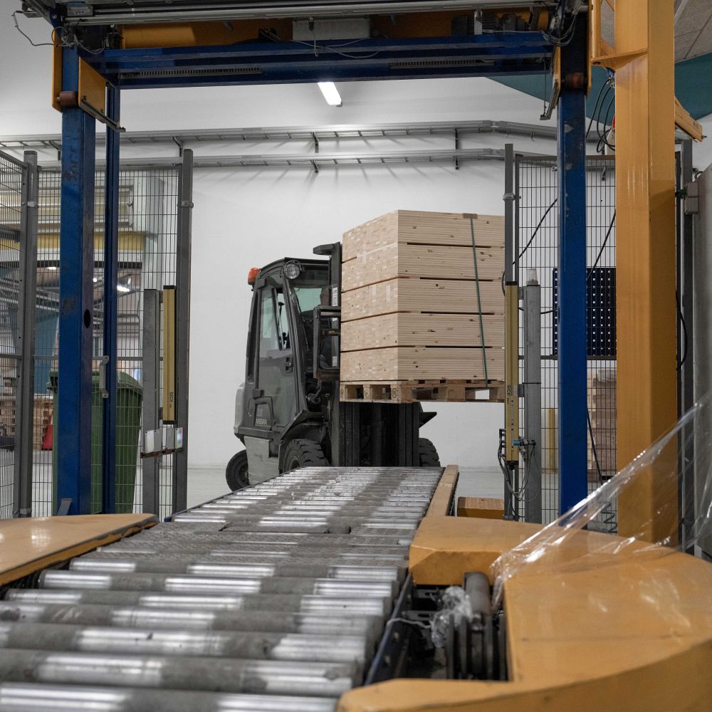 Vores produktion starter med modtagelsen af ubehandlet træ, som vi får leveret fra faste leverandører i de nordiske skove. Det er træ, som ikke kun er stærkt og holdbart. Det er også FSC-certificeret, så vi sikrer, at træet stammer fra ansvarligt forvaltede skove.